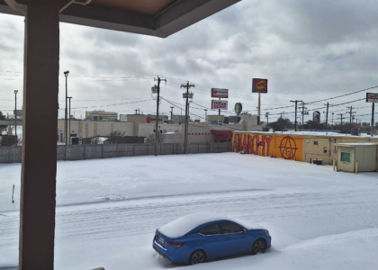 Still stuck inside from the storm. Snow so thick you can’t see the curb across the street. Plenty of ice hidden under all that, too.